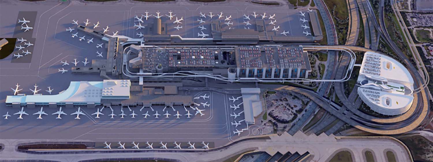 - Facility interfacing and vertical circulation cores between APM and existing facilities, including new elevated pedestrian walkways